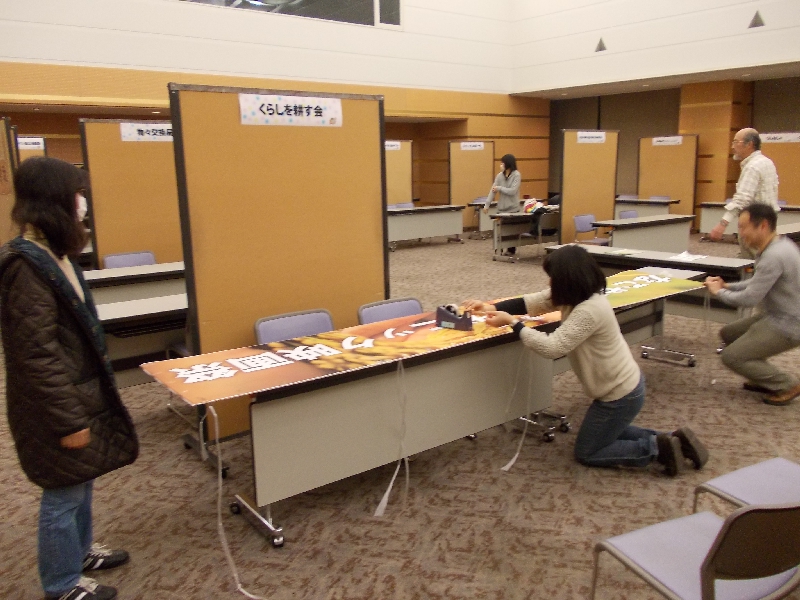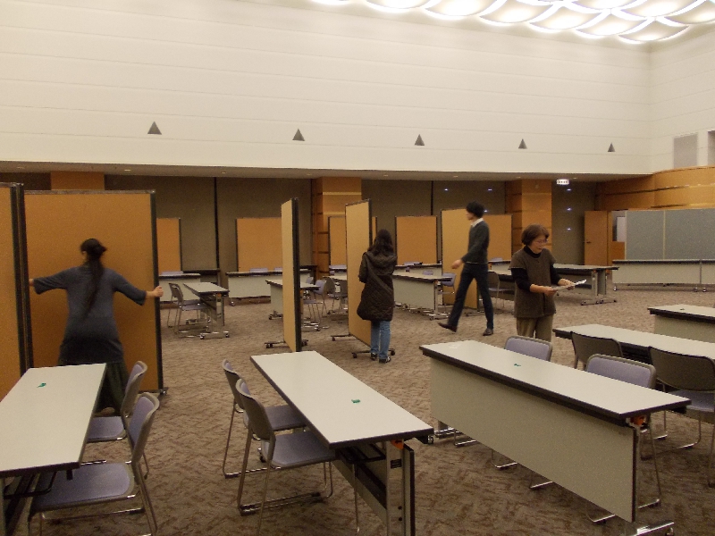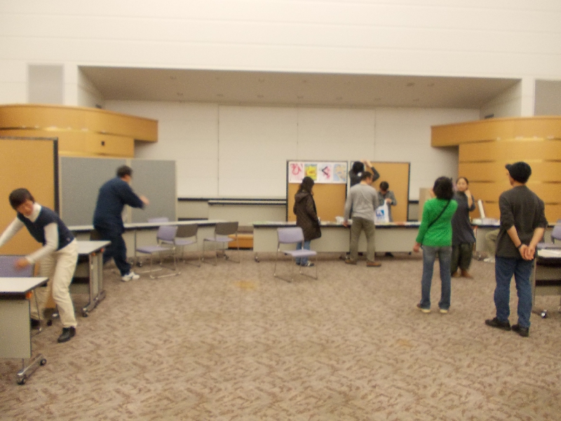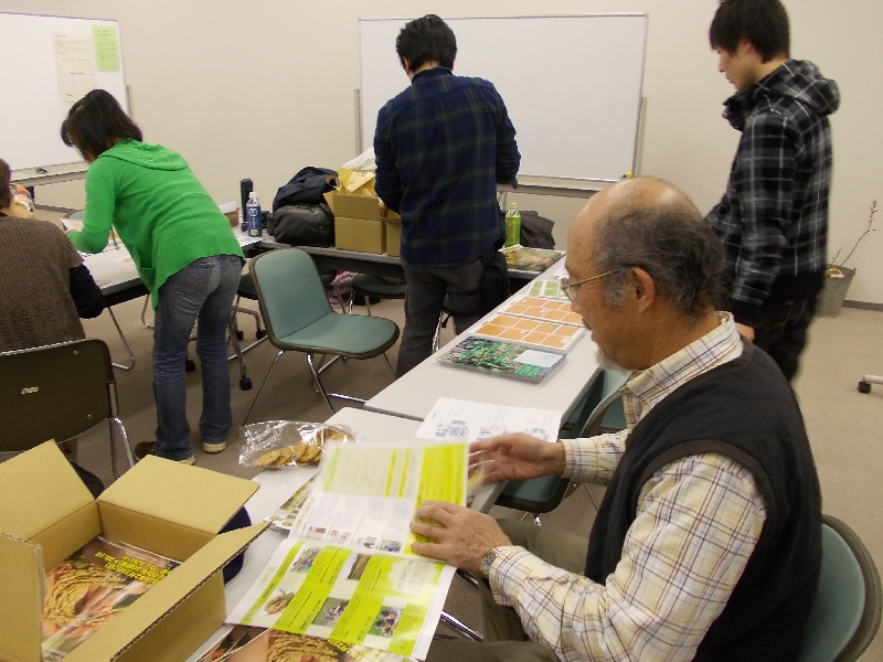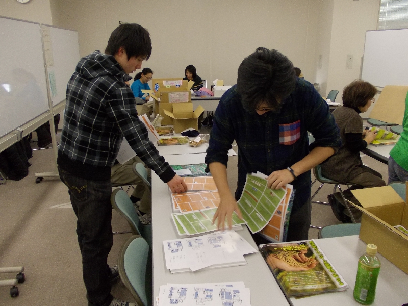 実行委員で当日来場者に配布するパンフレットへの資料のはさみこみ作業を行いました。数百セット無事間に合いました。