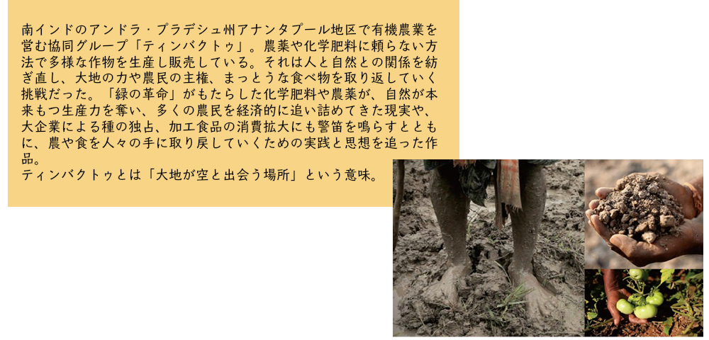 ★『有機農業が拓く地平-インド ティンバクトゥの挑戦』(30分)