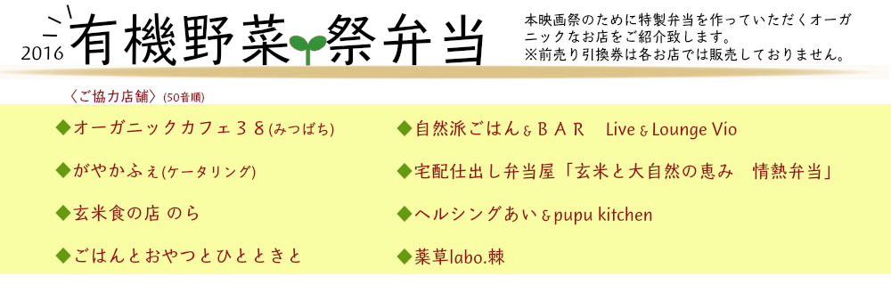 「有機野菜祭弁当」ご協力店舗様のご紹介